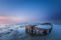 Bij laag water zie je dit scheepswrak bij het Friese dorp Wierum voor de kust liggen. Vervolgens moet je een eindje wadlopen om het wrak goed op de foto te kunnen zetten. Uiteraard zijn de lichtomstandigheden het belangrijkste bij het maken van goede landschapsfoto's. Deze foto is gemaakt met een canon 5D Mark II, een Canon 17-40 mm L groothoelens, Lee grijsgradatiefilter en een goed statief vlak na zonsondergang tijdens het blauwe uurtje.