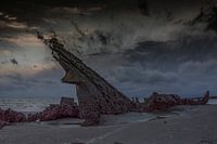 Oud scheepswrak, Captain James A. Duffy, in de provincie Zeeland in Nederland.