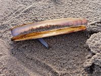 Een scheermes-schelp op het strand van Zandvoort.
