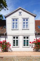 Koop de foto Schelfstadt met wit vakwerkhuis op de varkensmarkt, Mecklenburg-Vorpommern, Duitsland, Europa van Torsten Krüger als print op canvas, aluminium dibond, (ingelijste) fotoprint, behang en ArtFrame. Voor jou op maat geprint in Fine-Art kwaliteit.