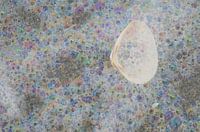 Kokkel schelp bedekt door het veelkleurige zeeschuim. De kleuren zijn hier geweldig en tegelijkertijd vraag je je af waar kijk ik nou naar.