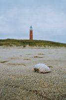Schelp met de Vuurtoren van Texel in de achtergrond