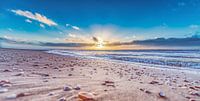 Zelfs de schelpen genieten van de laatste stralen voordat de zon de zee inzakt. Genomen op het strand bij Den Helder. De ultime combinatie van zon, wind, wolken en bruizend zeewater...