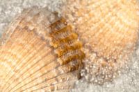 Deze macrofoto van schelpen in natuurtinten bestaat uit twee foto's van slechts één schelp (de gedoornde hartschelp, Acanthocardia echinata) die op een creatieve manier zijn samengevoegd. De foto wekt de illusie dat de schelpen omringd worden door het water van de zee.