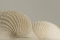 Detailopname van een paar schelpen in een rustige aardetint. Krijgt u ook zin om naar het strand te gaan wanneer u naar deze foto kijkt?