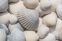 "Schelpen wit, crème en beige" is een (bewerkte) foto van witte, crème en beige kleurige schelpen gevonden op het strand in Zeeland, Nederland