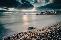 Schelpenstrand aan IJsselmeer met wolken en zon van Fotografiecor .nl