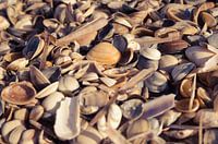 Op het strand bij Katwijk aan Zee lag het bezaaid met prachtige kleine schelpjes. De winterzon zorgde voor een warme gloed.