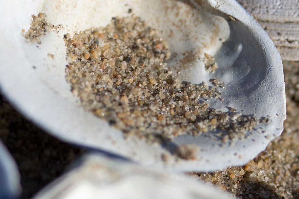 Schelpjes met zand... voor mij straalt dit rust uit. Maar het strand is voor mij ook een plek om na te denken, om te dromen, om bij te komen. Mooi voor aan de muur!