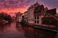 Kleine Franse wijk met kerstversieringen in Straatsburg, Frankrijk, Frankrijk