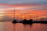 "Schemering Symfonie" onthult een serene jachthavenbadend in de laatste stralen van de dag, waar de hemel zich tooit in een symfonie van roze en paarse tinten. De silhouetten van zeilboten dobberen rustig op de kalme wateren, hun masten tekenen delicate lijnen tegen de kleurrijke achtergrond. Een aangename stilte lijkt over het tafereel te hangen, slechts onderbroken door het zachte ruisen van water tegen de kade. De elegantie van het moment is vastgelegd in deze foto, die niet alleen de schoonheid van de natuur, maar ook de vredige co-existentie van mens en zee benadrukt. Het is een perfect stuk voor liefhebbers van nautische scenes, zonsondergangen en de rustige reflectie die water kan bieden in een drukke wereld.