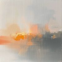 Een zachte, vervaagde zonsondergang ontvouwt zich in dit abstracte werk, waarin grijze tinten zich vermengen met subtiele oranje en gele accenten. De lucht, gehuld in een nevelige sluier, straalt een melancholische warmte uit die uitnodigt tot introspectie. De gedempte kleuren en onscherpe vormen creëren een atmosfeer van sereniteit en…