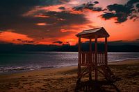 Zonsondergang aan het strand van Astros, Peloponnesos, Griekenland.
