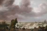 Schepen in nood op een rotsachtige kust, Simon de Vlieger