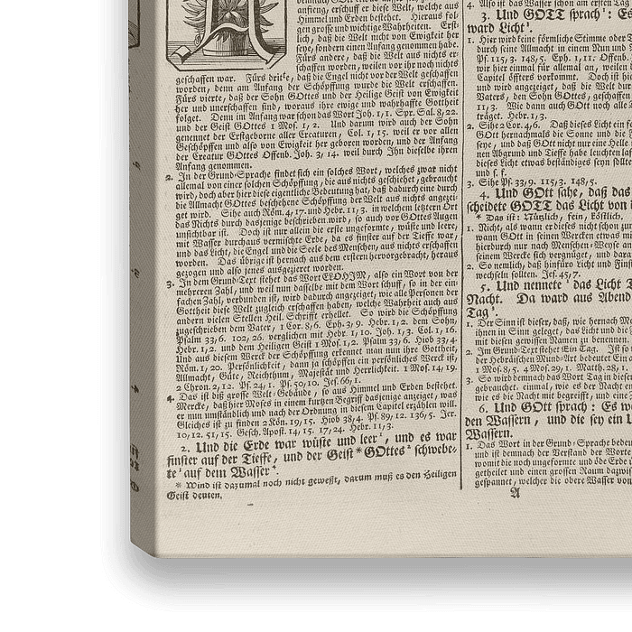 Het eerste verhaal uit het eerste boek, Genesis uit de Duitse bijbel. Het verhaal van de schepping van de aarde tot Adam en Eva.