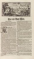 Eerste blad uit de bijbel in het Duits met een illustratie van de schepping.