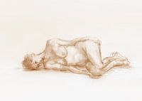 Koop Schets liggend naakt vrouw mokka bruin van Krista Kitsz Art op canvas, aluminium dibond, (ingelijste) fotoprint, behang en ArtFrame, op maat geprint in Fine-Art kwaliteit.