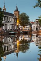 De Korte Haven met de Korenbeurs en de Grote of Sint-Janskerk in avondschemer.