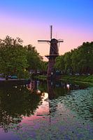 De Nieuwe Haven in Schiedam vanaf de Kippenbrug met op de achtergrond windmolen de Walvisch. HDR opname welke gemaakt is na zonsondergang. Een HDR opname wordt gemaakt door 3 verschillende belichtingen over elkaar heen te leggen zodat er een hoger dynamisch contrast wordt bereikt. Hierdoor springt de foto er uit qua kleur en belichting…
