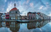 Panorama opname van Schiedam met het zakkendragershuisje.