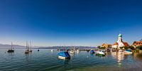 Het schiereiland met de kerk van St. George in Wasserburg aan het Bodenmeer, Baden-Württemberg, Duitsland.