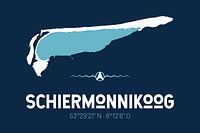 Schiermonnikoog - het vakantie-eiland voor de Nederlandse kust als een minimalistische kaart. Decoratief ontwerp voor alle Noordzeeliefhebbers die van de zee houden - ook als cadeau-idee!