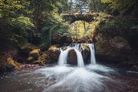 Foto met lange sluitertijd van de Schiessentümpel waterval nabij het plaatsje Müllerthal in Luxemburg.