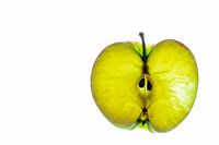 Een schijfje groene appel geïsoleerd op een witte achtergrond van bovenaf.
