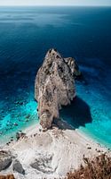 Schilderachtig uitzicht op een prachtige rots voor de kust bij Keri op Zakynthos in Griekenland. Helder blauwe zee, boten, strand, zee, perfect.