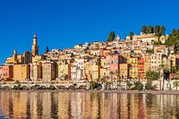 FOTOGRAFIE Pittoreske, kleurrijke huizen in de oude stad Menton aan de Côte d'Azur, Middellandse Zee, Frankrijk
