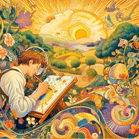 Een mooi kleurrijk landschap in de lente als een bron van inspiratie voor een schilder. Een prachtig werk wat zeker de aandacht zal blijven trekken omdat er steeds wat nieuws valt te ontdekken.