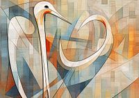 Schilderij Abstracte Vogel | Verstrengeld in elegantie - Kleurrijke abstracte vogel