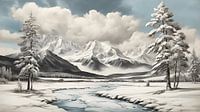 Altijd al digitale schilderkunst van een berg winterlandschap als wanddecoratie willen hebben?
