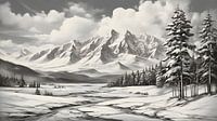Altijd al digitale schilderkunst van een berg winterlandschap als wanddecoratie willen hebben?