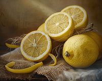 Schilderij Citroen - Citroen schilderij, fruit kunst, fris, levendig