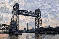 Unieke digitale schilderij van De Hef brug in Rotterdam, ideaal als wanddecoratie. Gemaakt van een echte foto, perfect voor een indrukwekkend kunstwerk aan de muur.