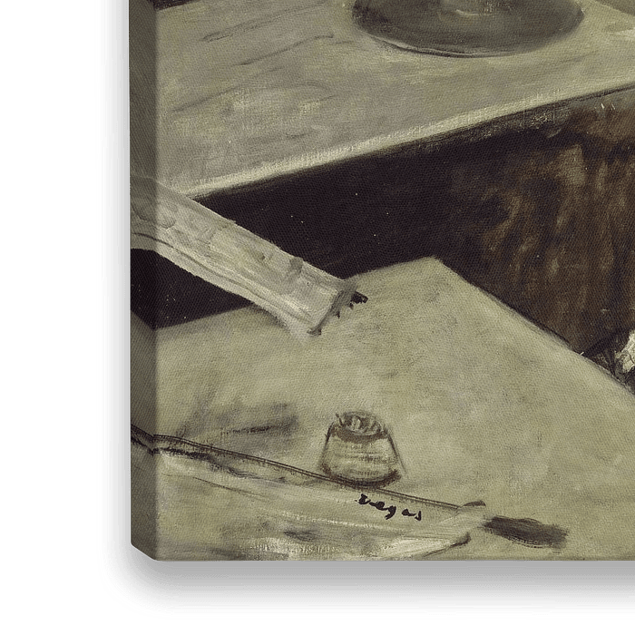 Het schilderij toont een jonge vrouw achter een glas absint en een man in sjofele kleden, lurkend aan een pijp. De compositie is sterk asymmetrisch. Aanvankelijk heette het schilderij In een café, maar al gauw werd het Absint of De absintdrinkster genoemd. Het werk groeide uit tot een metafoor voor de donkere kant van het moderne bestaan. Het kan gezien worden als uitdrukking van de eenzaamheid en harde anonimiteit van het moderne stadsleven. De vrouw met de glas absint is Ellen Andrée en de man met de pijp moet Marcellin Desboutin, een vriend van Degas, voorstellen.