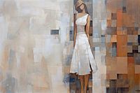 Schilderij Equilibrium - Equilibrium is een mooi abstract schilderij dat rust uitstraalt. De abstracte vormen en het ingetogen kleurenpalet creëren een sfeer van rust en balans. De verfkleuren zijn zacht, subtiel en harmonieus, waardoor het schilderij een rustgevende uitstraling heeft. De structuur van de verf is zichtbaar, waardoor het schilderij meer diepte krijgt. Het schilderij is afgebeeld met een vrouwenfiguur die abstract geschilderd is. Wat houd haar bezig? Wat is haar innerlijke balans? Deze vragen zullen je elke keer weer verrassen als je naar het schilderij kijkt. Het schilderij is een prachtig kunstwerk dat perfect past in je woonkamer en je een gevoel van rust en balans geeft.