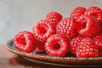 Schilderij Frambozen - Frambozen realisme, fruitige charme, schilderij rode frambozen