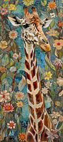 Details: giraffe, bloemen, natuur, dier, flora, kleurrijk, mozaïek, schilderij, kunst, wildlife