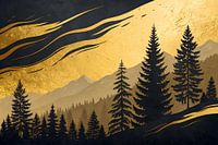Dit langwerpige schilderij in goud en zwart is dé perfecte blikvanger.