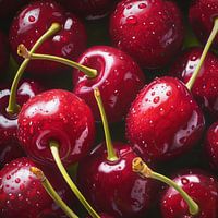 Schilderij Kersen - kersen kunst, levendige textuur, waterdruppels glans