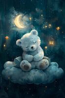 Ontdek het charmante "Slapende Beer Schilderij" – een hartverwarmend kunstwerk perfect voor de kinderkamer, met een dromerige nachtscène.