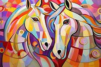 Details: paarden, abstract, kunst, kleurrijk, schilderij, modern, canvas, decoratie, dierenportret, interieur