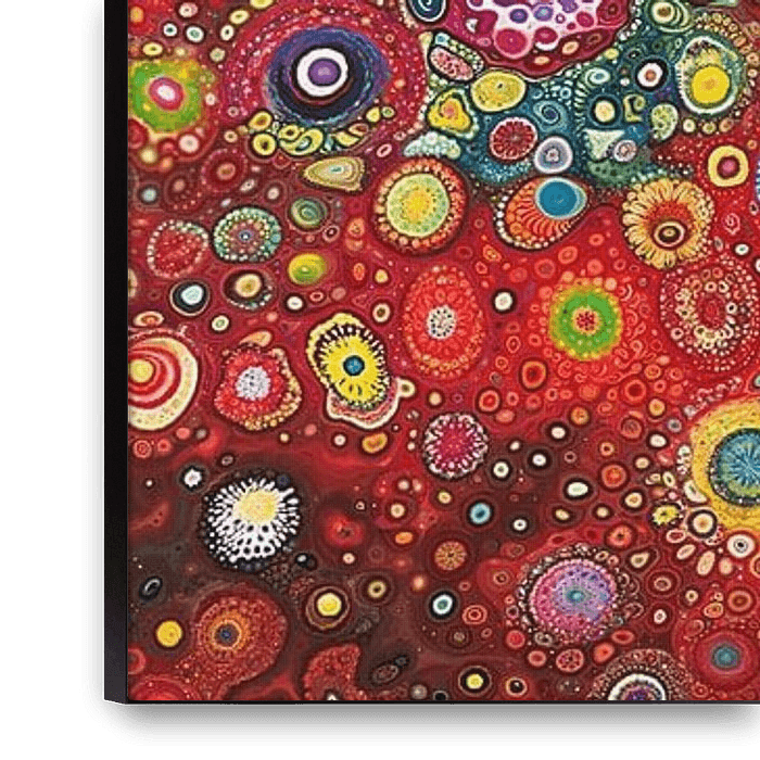 Details: abstract, cirkels, energiek, kleurrijk, patronen, rood, blauw, geel, oranje, stippen, Pop of Colour