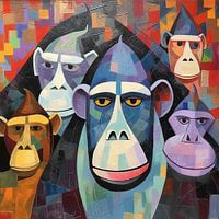 Schilderij Kleurrijke Apen | Abstracte Jungle Vibes - kleurrijke apen abstract