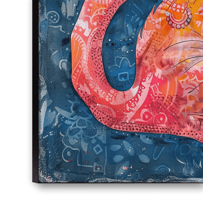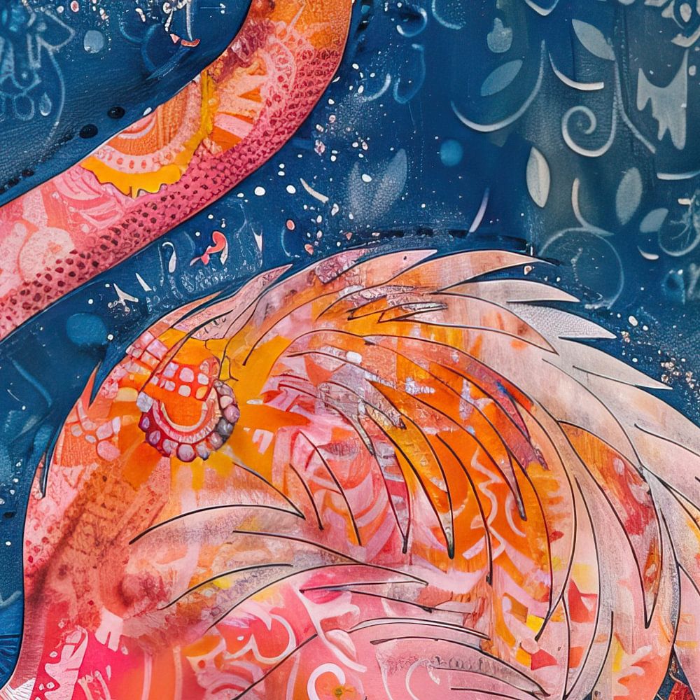 Details: flamingo, vogel, kleurrijk, tropisch, kunst, modern, schilderij, roze, blauw, oranje