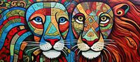 Schilderij Kleurrijke Leeuwen