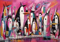 Koop dit vogel kunstwerk Schilderij Kleurrijke Pinguïns | Pinguïn parade extravaganza van ARTEO Schilderijen als print op canvas, aluminium dibond, (ingelijste) fotoprint, behang en ArtFrame. Voor jou op maat geprint in Fine-Art kwaliteit.