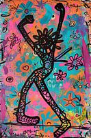 Schilderij Levendig Abstract - vrolijk dansend figuur, kleurrijk abstract